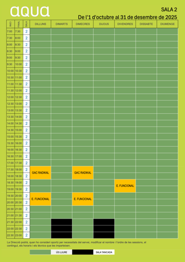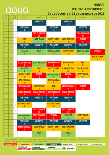 Al CEM Montcada Aqua oferim una àmplia varietat d'activitats dirigides incloses en l'abonament. Disposem de tres sales d'activitats, una exclusiva per a Ciclo Indoor, i la piscina interior per les activitats aquàtiques.